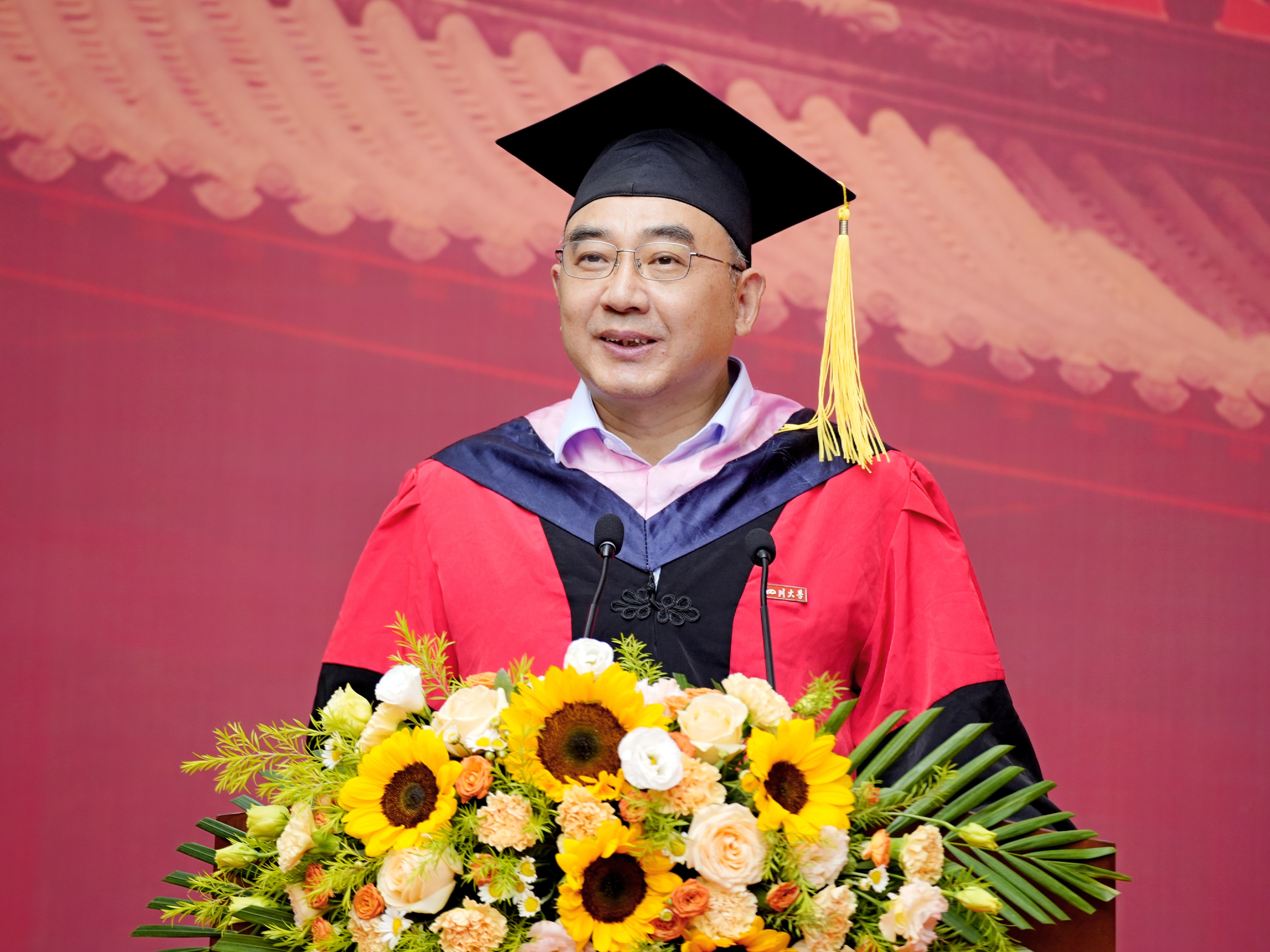 教师代表土地资源管理系饶永恒在发言中叮嘱毕业生,要在变革中寻找机遇,以知识筑牢安身立命之本,守住初心与使命,做有情怀、有担当的公管人。