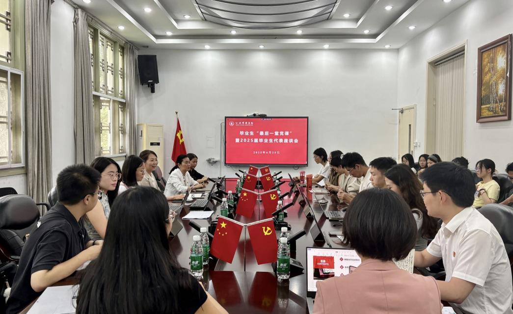 6月25日下午,澳门太阳成集团在萃文楼311会议室举行了2025届毕业生“毕业前最后一堂党课”暨毕业生代表座谈会。学院党委书记王彬、党委副书记兼纪委书记罗亚玲、党政办刘晓燕老师、毕业年级辅导员青杨媚和付亚南、2025届毕业生党员及毕业生代表参加了此次活动。