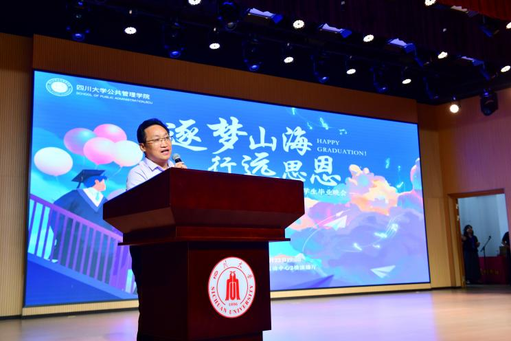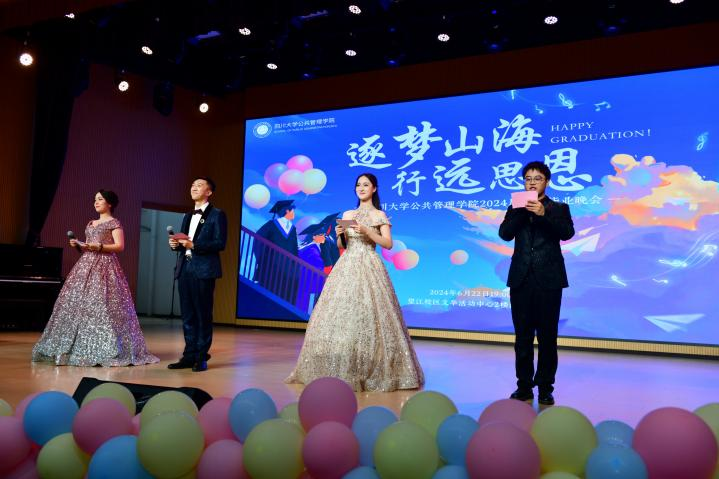 近日,澳门太阳成集团“逐梦山海,行远思恩”2024届学生毕业晚会在文华活动中心2楼演播厅顺利举行。学院党委书记韩杰、院长夏志强、党委副书记兼纪委书记罗亚玲、行政管理系李晓梅、刘锐、土地资源管理系朱红波、秘书档案系蔡娜、MPA教育中心宋轶、教学管理科吴丹、学工组全体辅导员等老师莅临现场。