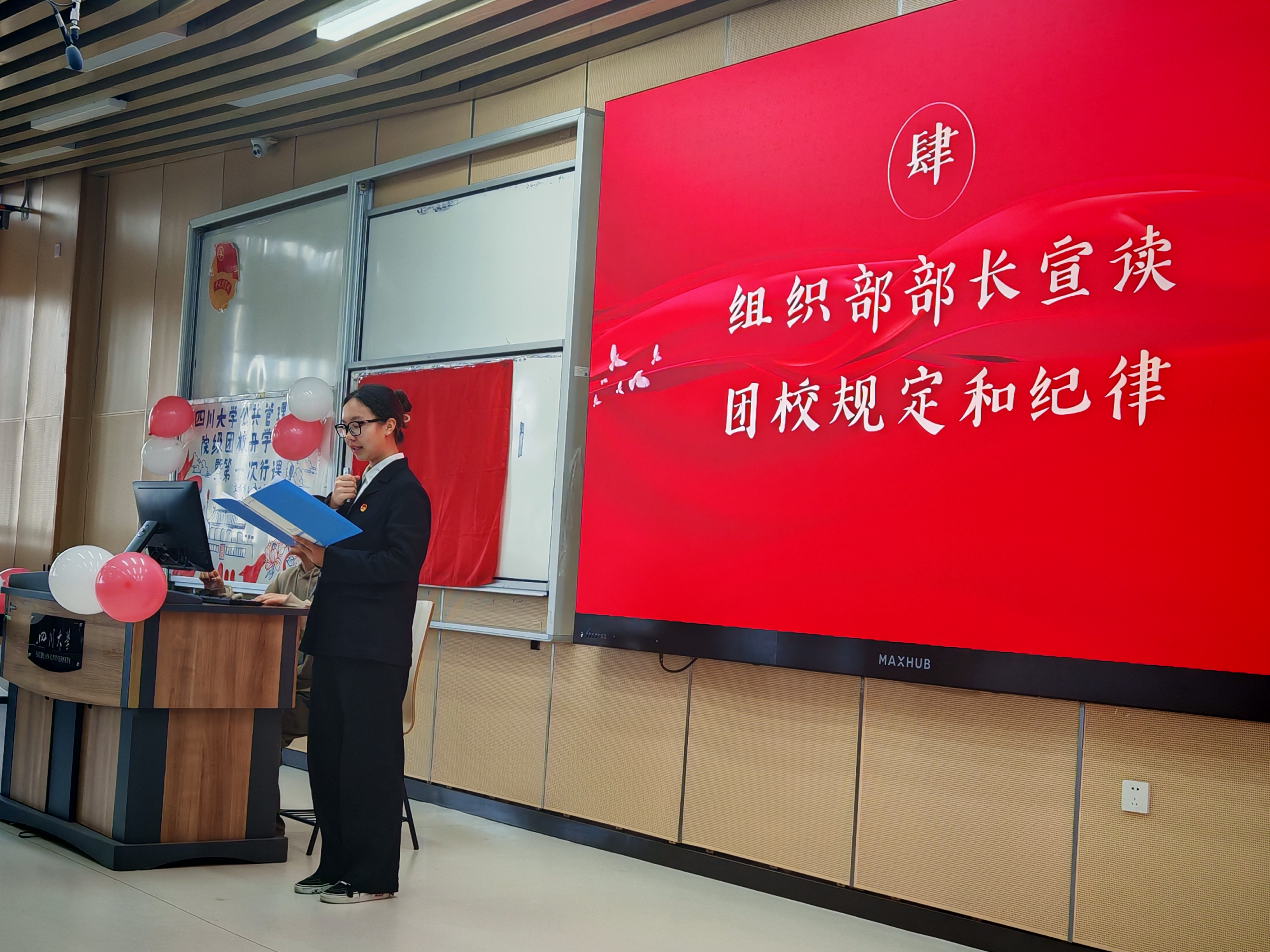 开学典礼上师生们齐唱团歌、重温入团誓言,在铿锵有力的誓词中,同学们重温初心,感受使命。院团委组织部部长张珺兮同学宣读了团校规定和纪律。