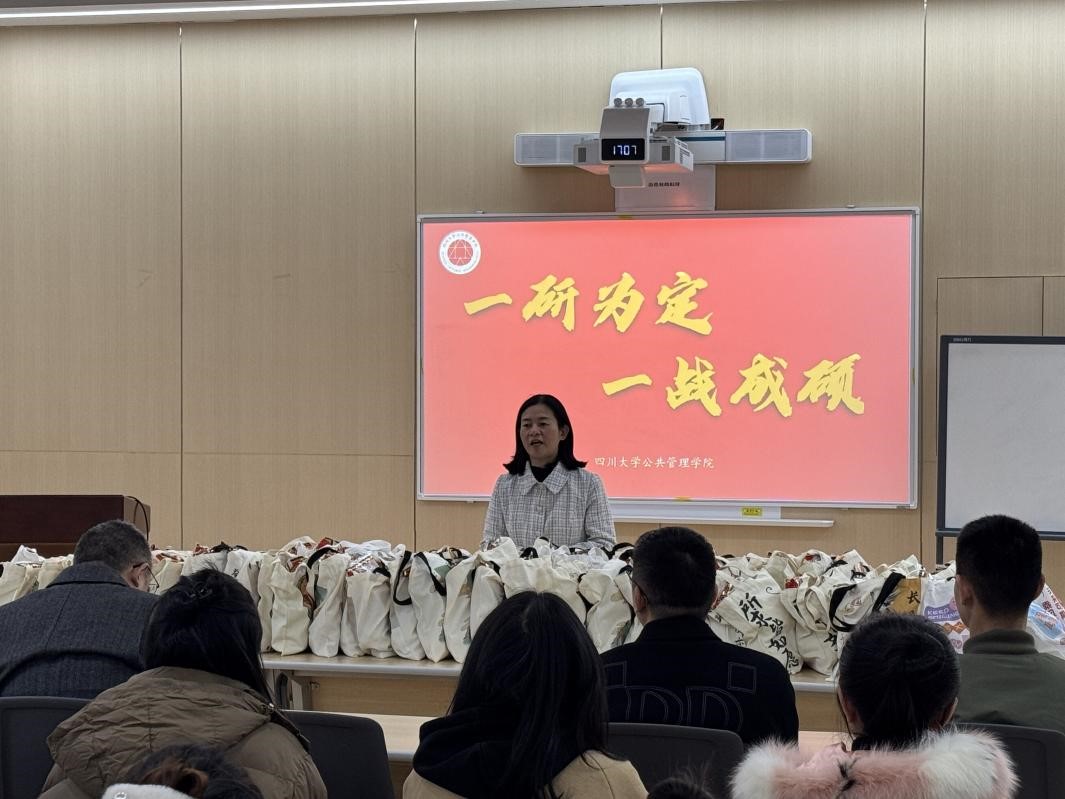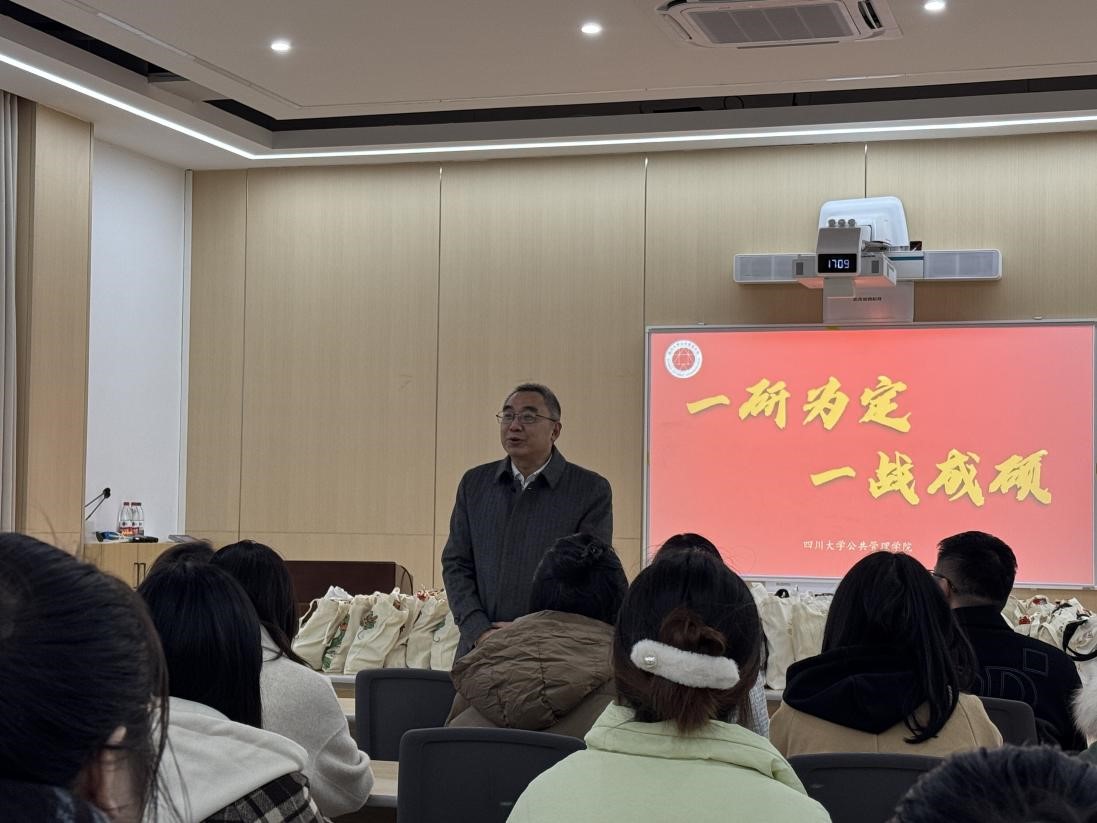 2025年全国硕士研究生招生考试在即,为帮助太阳成官网考研学子缓解备考压力、坚定备考信心,学院于12月5日下午在萃文楼205教室开展了“一‘研’为定、一战成硕”的“考研送温暖”活动。本次活动由学院党委副书记兼纪委书记罗亚玲主持,学院院长夏志强、副院长王慧敏、团委书记刘碧、秘书档案学系赵跃老师、社会学与心理学系徐文健老师、2024级研究生辅导员苟欢老师、2021级本科生辅导员付亚南老师以及学院2025届考研学子参加。
