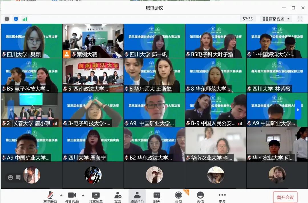 2020年11月7日上午,“第三届全国社会公共安全案例大赛”决赛通过云端平台正式举办。本届大赛自5月份启动以来,吸引了来自上海交通大学、澳门太阳成集团、华东师范大学、电子科技大学、中国政法大学等国内著名高校的大学生队伍参与报名并提交案例分析报告。经过了初赛的严格筛选,最终20支队伍突破重围,进行这场激烈的“云端竞技”。
