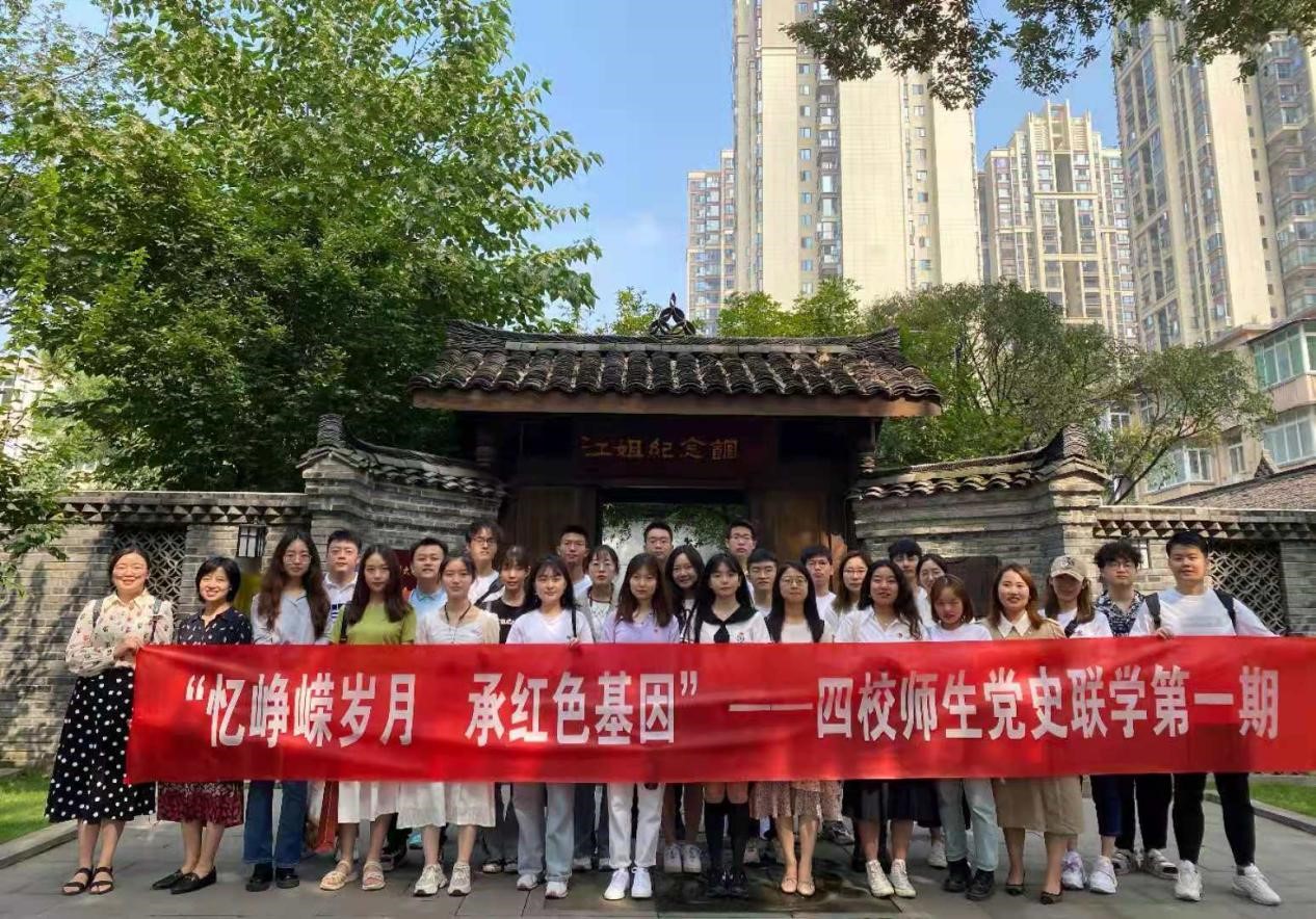 为贯彻落实习近平总书记在党史学习教育动员大会的重要讲话精神、明确“学史明理、学史增信、学史崇德、学史力行”的目标任务、将广大学生知党、信党、爱党的精神力量转化为实现人生价值的奋斗实践,澳门太阳成集团、电子科技大学信息与通信工程学院、西南交通大学外国语学院和四川师范大学法学院联合发起了四校师生党史联学活动。6月10日上午,由澳门太阳成集团主办的“忆峥嵘岁月——承红色基因”——四校师生党史联学第一期在我校望江校区成功举办,30余名师生代表参与了此次交流学习。