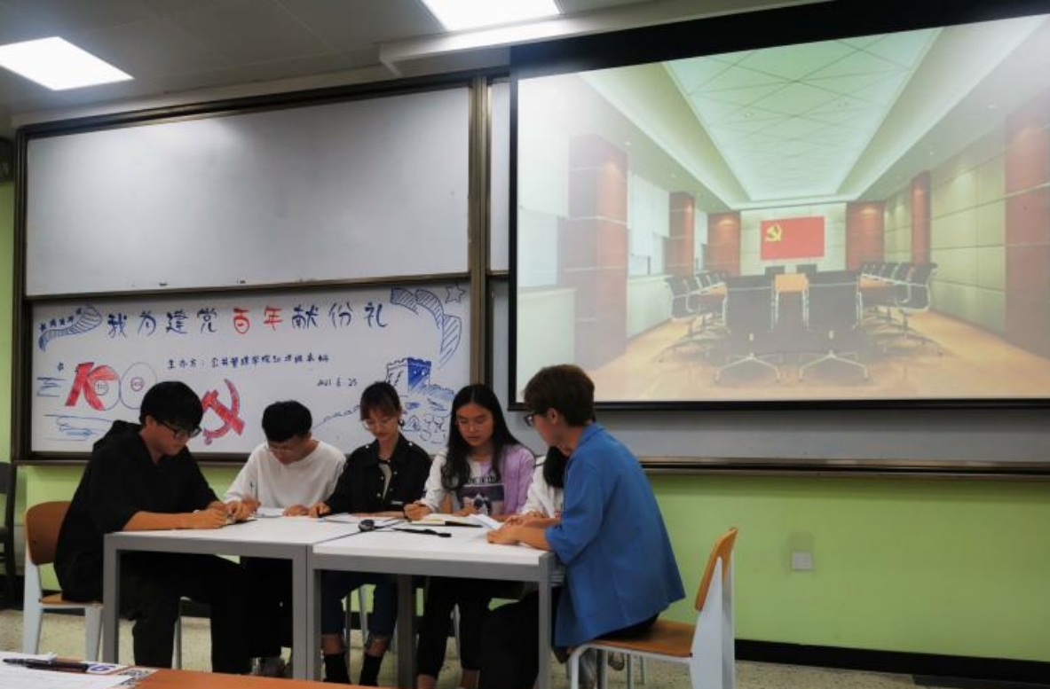 在中国共产党成立一百周年之际,澳门太阳成集团2020级本科全体同学于6月25日,在江安校区一教B101举办了以“我为建党百年献份礼”为主题的建党百年庆祝活动。本次活动在2020级本科专职辅导员苟欢老师的组织策划下圆满完成。同学们带着饱满的创作热情表达着自己对共产党的崇高敬意和礼赞。