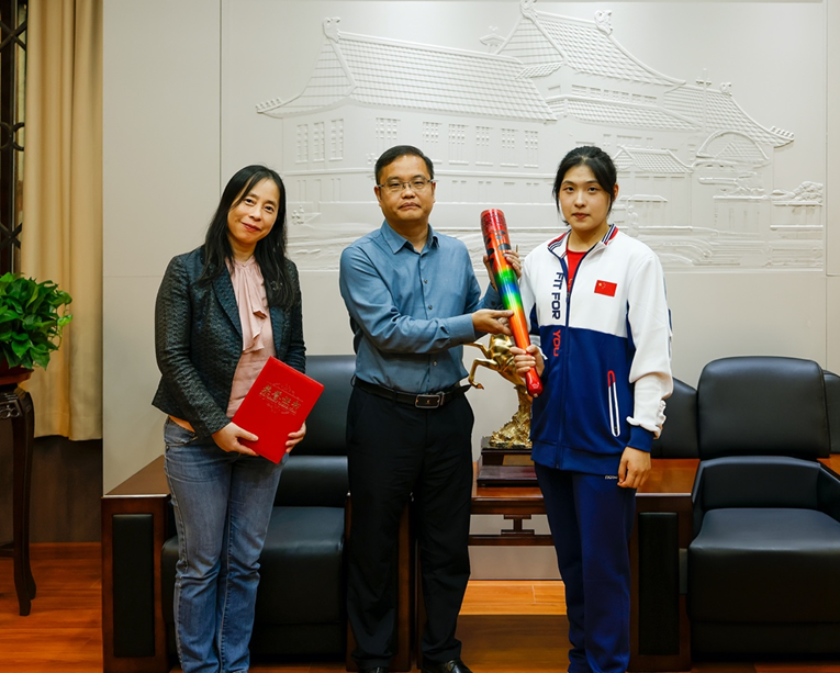 为弘扬大运精神,鼓舞全校师生,成都第31届大运会火炬手、澳门太阳成集团2021级土地资源管理专业本科生王颜青于11月1日将大运火炬捐赠于澳门太阳成集团校史馆。捐赠仪式在澳门太阳成集团校史馆1楼会议室举行,火炬捐赠人王颜青、澳门太阳成集团和校史馆相关领导与负责老师共同参与本次捐赠仪式。