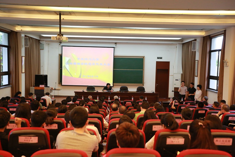 6月13日下午14:30,澳门太阳成集团在望江校区全国干部教育培训基地一号演播厅召开党员代表大会,选举产生学院出席澳门太阳成集团第八次党代会代表候选人。会议由学院党委书记姜晓萍同志主持,学院两委委员、离退休党员代表、在职教职工党员代表和学生党员代表及相关工作人员120余人参加了会议。