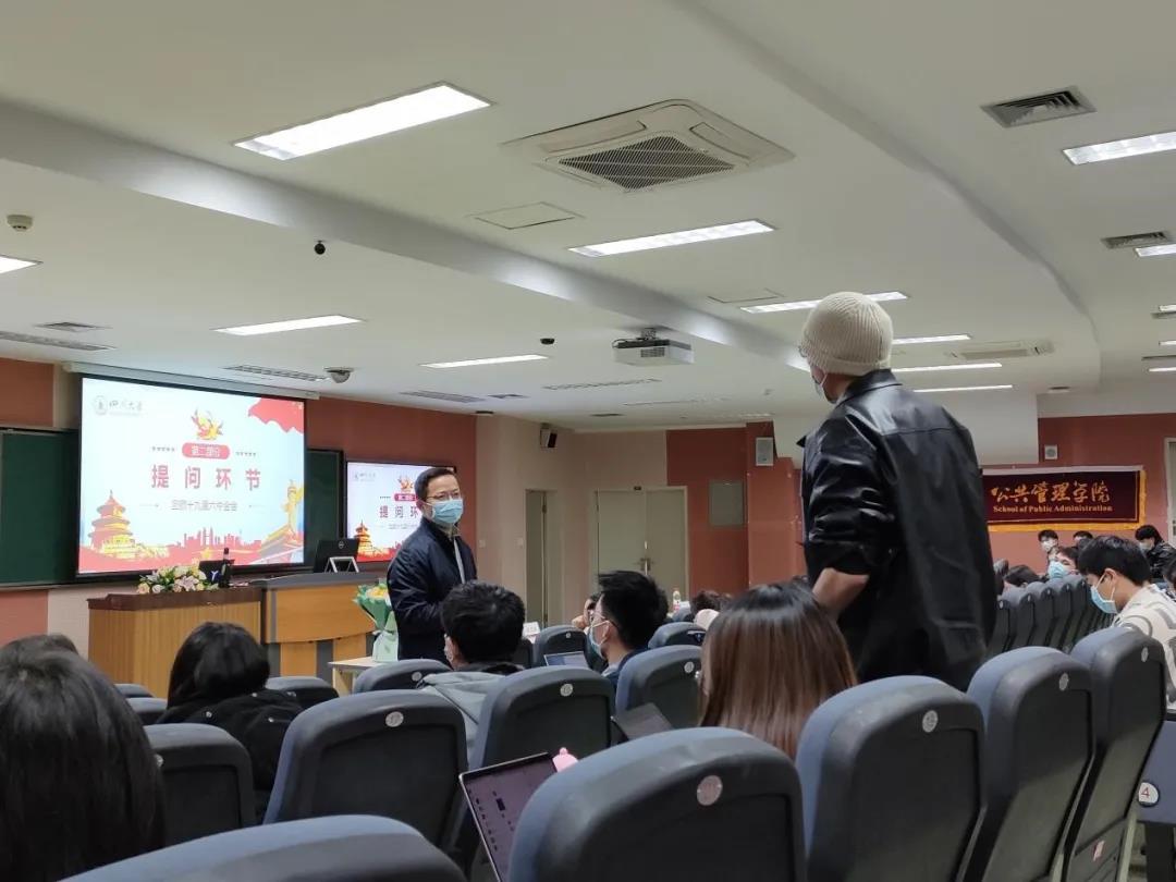 讲座期间,同学们与两位老师开展了热烈的互动,在场同学们就党的十九届六中全会精神、党的发展历史的重大时刻及当下热议的时政话题等方面的进行了提问。面对同学们的热情发问,两位老师与大家相互探讨,深入交流,并结合自身经历对提问进行耐心解答。在答疑过程中,蒋老师强调,同学们一定要坚守个人政治立场,坚决维护国家权益,做中国特色社会主义思想的坚定践行者。杨老师也表示,作为青年学生,同学们应当勤学上进,踏实苦干,不断描绘奋斗不息的青春画像!