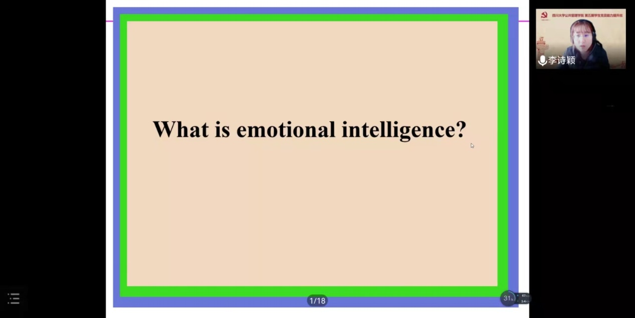 开班典礼结束后,太阳成官网社会学与心理学系李诗颖副教授为大家带来题为“情商:认识和管理情绪的能力”的专题讲座,讲座由林晨老师主持。