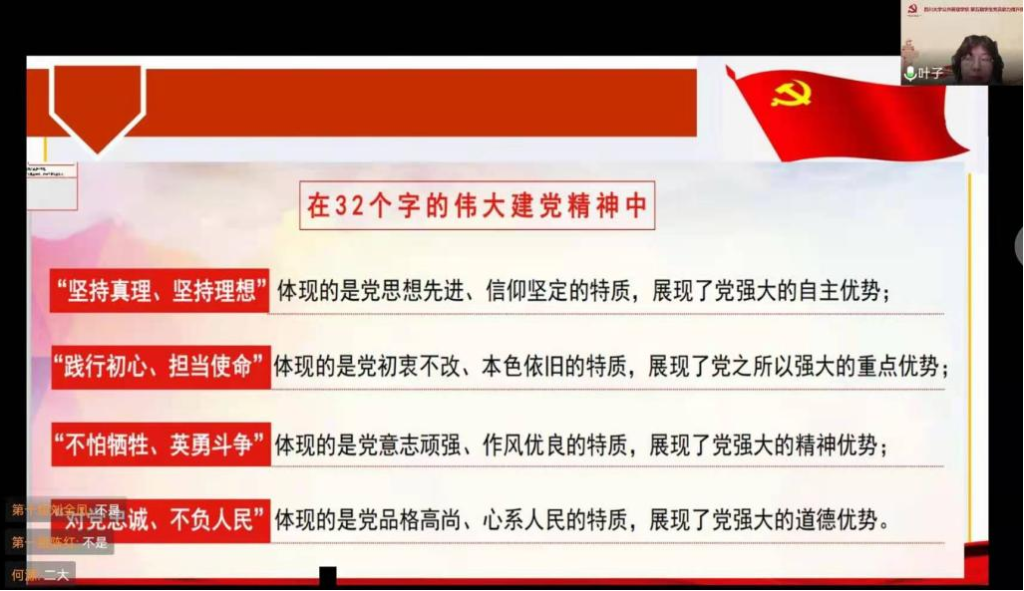 为进一步提高学生党员的党性修养,提升学生党员综合能力,充分发挥学生党员在学生中的先锋模范作用,2021年11月13日至14日,为期两天的澳门太阳成集团第五期党员能力提升班在线上顺利开展。
