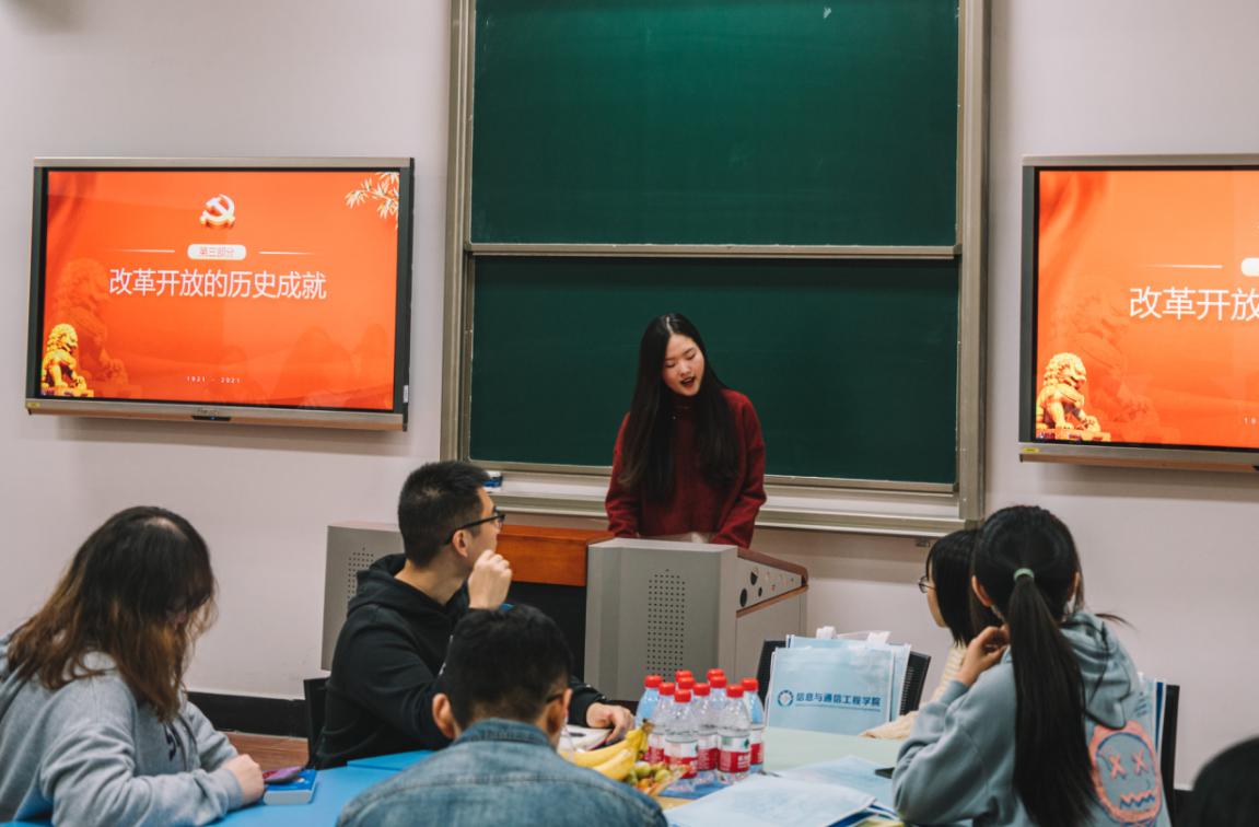 下午2:10,四校师生来到电子科技大学品学楼参加关于党史学习教育的座谈会。座谈会上大家纷纷发言,碰撞出思维火花。