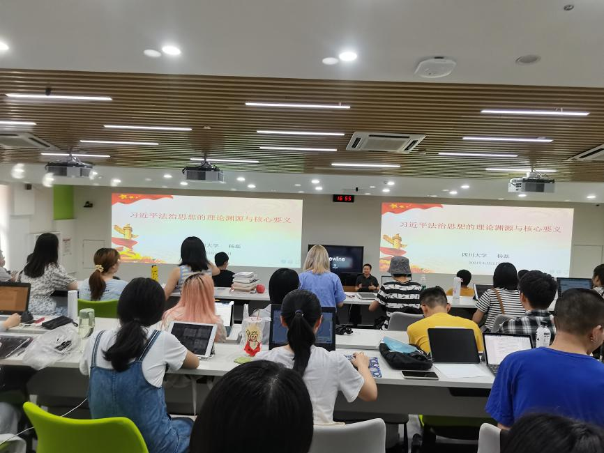 为庆祝中国共产党成立100周年,引导青年学生听党话、跟党走,深刻理解习近平新时代中国特色社会主义法治思想内涵,2021年6月25日,学院党委副书记杨磊以《习近平新时代中国特色社会主义法治思想的理论渊源与核心要义》为题,在澳门太阳成集团望江校区基教C104为澳门太阳成集团2018级本科学生讲授了专题党课。
