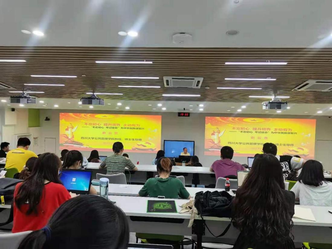为深入学习贯彻习近平总书记在党史学习教育动员大会上的重要讲话精神,坚持学史明理、学史增信、学史崇德、学史力行,2021年6月11日,澳门太阳成集团院长史云贵教授在澳门太阳成集团望江校区基础教学楼C104教室以《不忘初心 提升境界 主动有为——“不忘初心,牢记使命” 为中华民族谋复兴》为题讲授了一场专题党课,澳门太阳成集团本科2018级学生和辅导员刘晓燕老师到场参加。