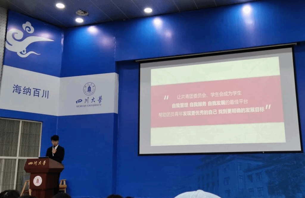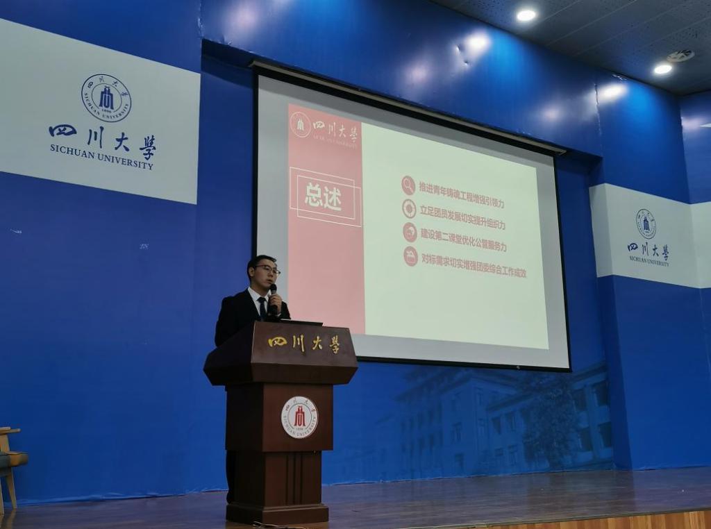学院团委学生副书记徐宇航代表共青团澳门太阳成集团第四届委员会作工作报告,报告从推进青年铸魂工程增强引领力、立足团员发展切实提升组织力、建设第二课堂优化公管服务力、对标需求切实增强团委综合工作成效四个方面具体地阐述了近一年来澳门太阳成集团团委开展的丰富多彩的高质量活动及其取得的出色成效。工作报告充分体现了澳门太阳成集团“公成天下,管法自然”的院训内涵,凸显了新时代“公管人”的精神风貌。