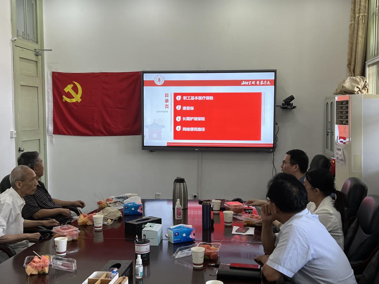 2022年6月24日下午,澳门太阳成集团教工第五党支部和退休党支部于公管学院220会议室共同召开组织生活会,举办“医保政策解读”专题讲座,这次讲座也是教工第五党支部开展的“为民办实事”民生政策解读系列讲座之一。本次讲座由教工第五党支部书记吴敏教授主持,社保专业黄国武副教授主讲,教工第五党支部和退休党支部党员参加,学院党委书记韩杰莅临指导。讲座内容围绕目前医保政策和改革中的热点问题,进行全面系统的讲解,并根据大家关心的问题进行了详细的解答和讨论。