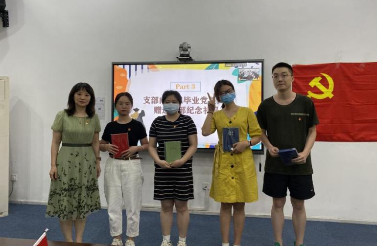 (廖海燕老师给毕业生党员赠送纪念礼物)