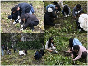 活动现场,年级党建负责人、研究生第三党支部书记刘碧同志强调了劳动教育的重要意义,叮嘱了劳动中的注意事项。在农场老师的指导下,同学们有序参与到具体劳动中,在花圃区域认真清理杂草、整理土地,在种植区域协作挖拾红薯。尽管泥土弄脏了衣裤,但同学们毫不在意,热情高涨地投入到劳作中,现场气氛热烈。