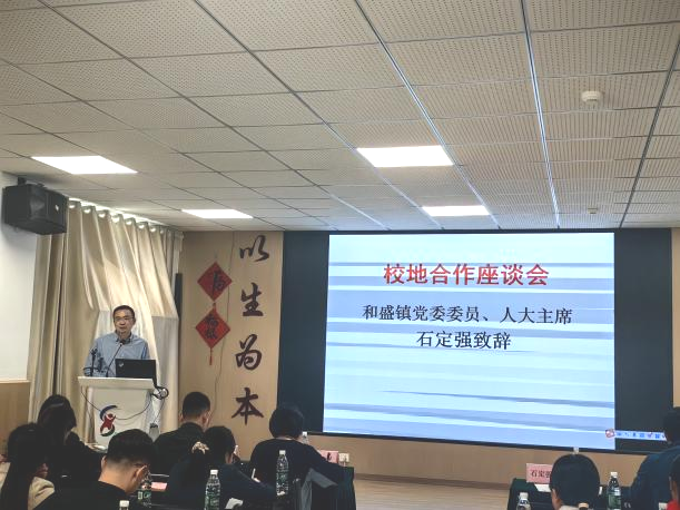 和盛镇社区教育学校校长陈猛主持了调研座谈会,镇党委委员、人大主席石定强及相关部门负责人、村社管理代表、辖区学校代表参会。首先,石定强围绕和盛镇人口状况、历史文化、产业发展和教育资源等进行了总体介绍,并对此次调研表示热烈欢迎。他希望博士生们能将研究成果转化为治理实效,实现校地双向赋能。李岚也简要介绍了学院概况和博士生党支部建设情况。她提出开展志愿服务活动是博士生实现学术追求与社会价值相统一的重要途径,希望博士生在基层治理实践中发挥专业优势,贡献公管智慧。双方就搭建“党建+学术+服务”融合平台达成共识,计划在数字适老服务、社保政策宣讲、青少年健康成长等领域开展长期合作。