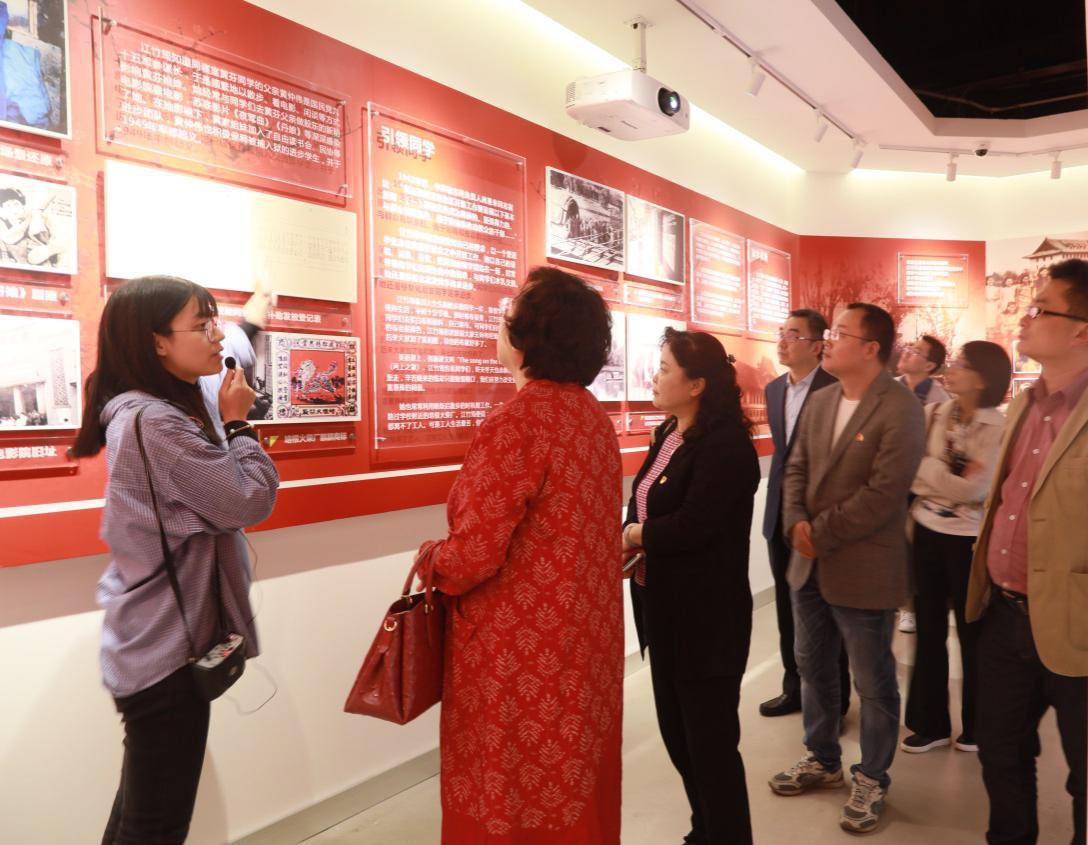 在讲解员的带领下,学院师生参观了江姐纪念展厅、川大英烈厅、江姐寝室以及江姐校园学习生活主题浮雕墙,通过阅读图片、文献、观看视频,学习了以江姐为代表的67名川大英烈校友的革命事迹。