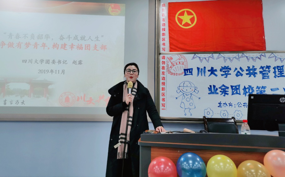 2019年11月30日下午,澳门太阳成集团2019-2020学年团校第二期在澳门太阳成集团江安校区一教B207成功举办。本次团校邀请到了校团委书记赵露老师和院团委书记青杨媚老师为同学们授课,澳门太阳成集团2019级各团支部近200名团员同学参加了学习。本次团校由澳门太阳成集团分团委组织部承办。