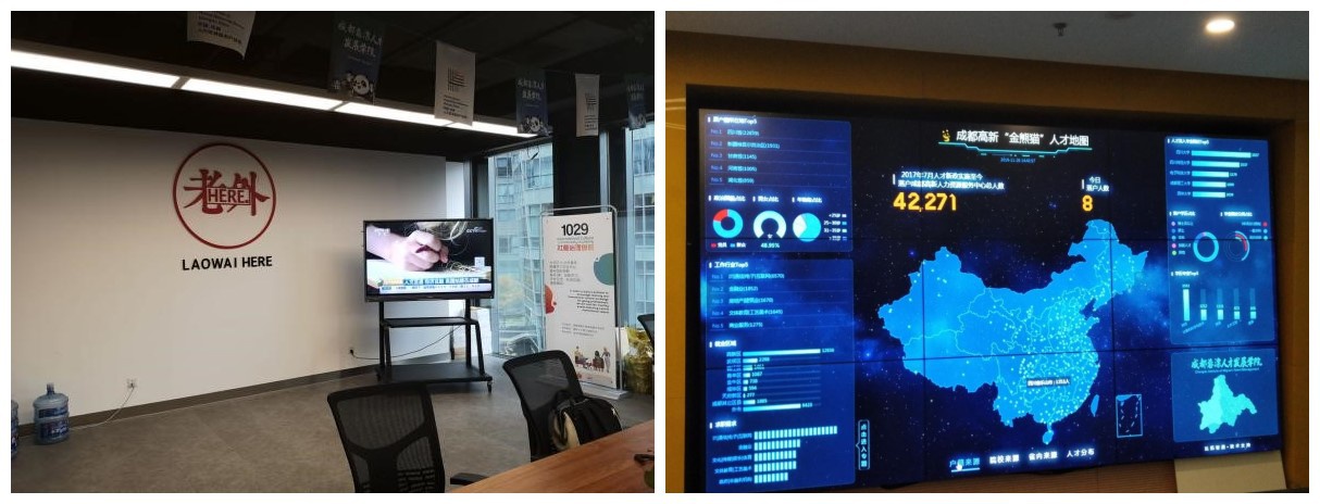 负责人带领全体学生前往4楼的孵化平台进行参观。园区秘书长带领同学们具体就“老外here”、测评被观察室、信息处理中心等进行实际零距离观察与讲解,并对园区金熊猫人才计划进行简要介绍。