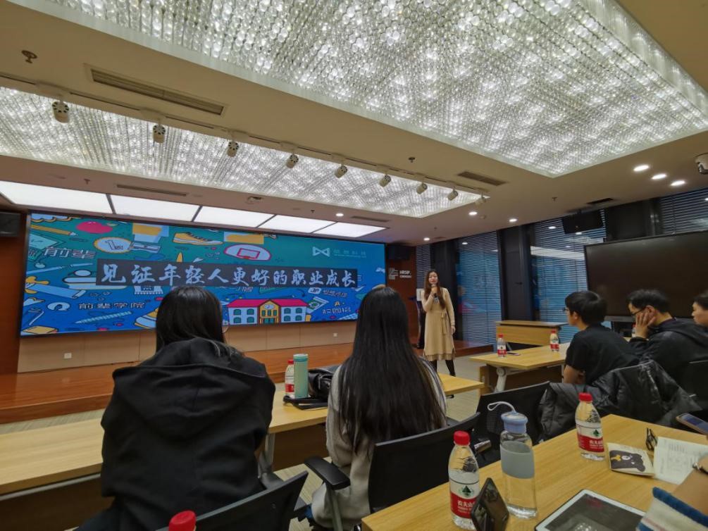 活动最后,由园区的入驻企业锐仕方达与实习僧的两位负责人向全体同学开展了以人力资源专业在市场的实践为主题的的座谈会。会上同学们就学历、兴趣、实习等相关问题与人资行业的发展与相关人员进行积极交流。