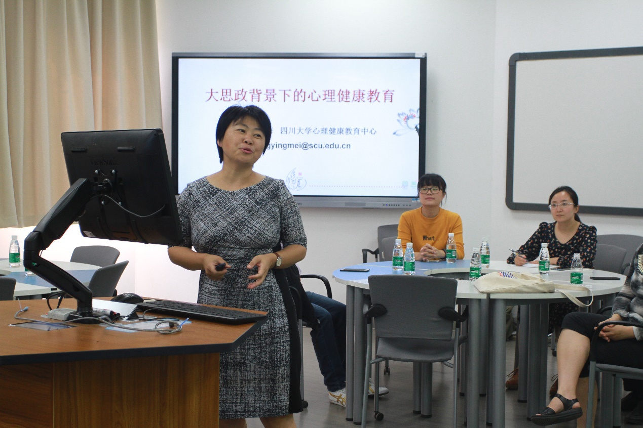 澳门太阳成集团心理健康教育中心副主任王英梅教授作了《大思政背景下的心理健康教育》主题培训。她结合心理学专业知识、调查数据、典型案例等生动而形象地对大学生心理健康工作领域、心理健康状态、心理健康标准、精神状况等进行了深入分析,对如何发现大学生情绪与行为障碍以及作为班主任如何应对和专业化处理作了详细阐释。