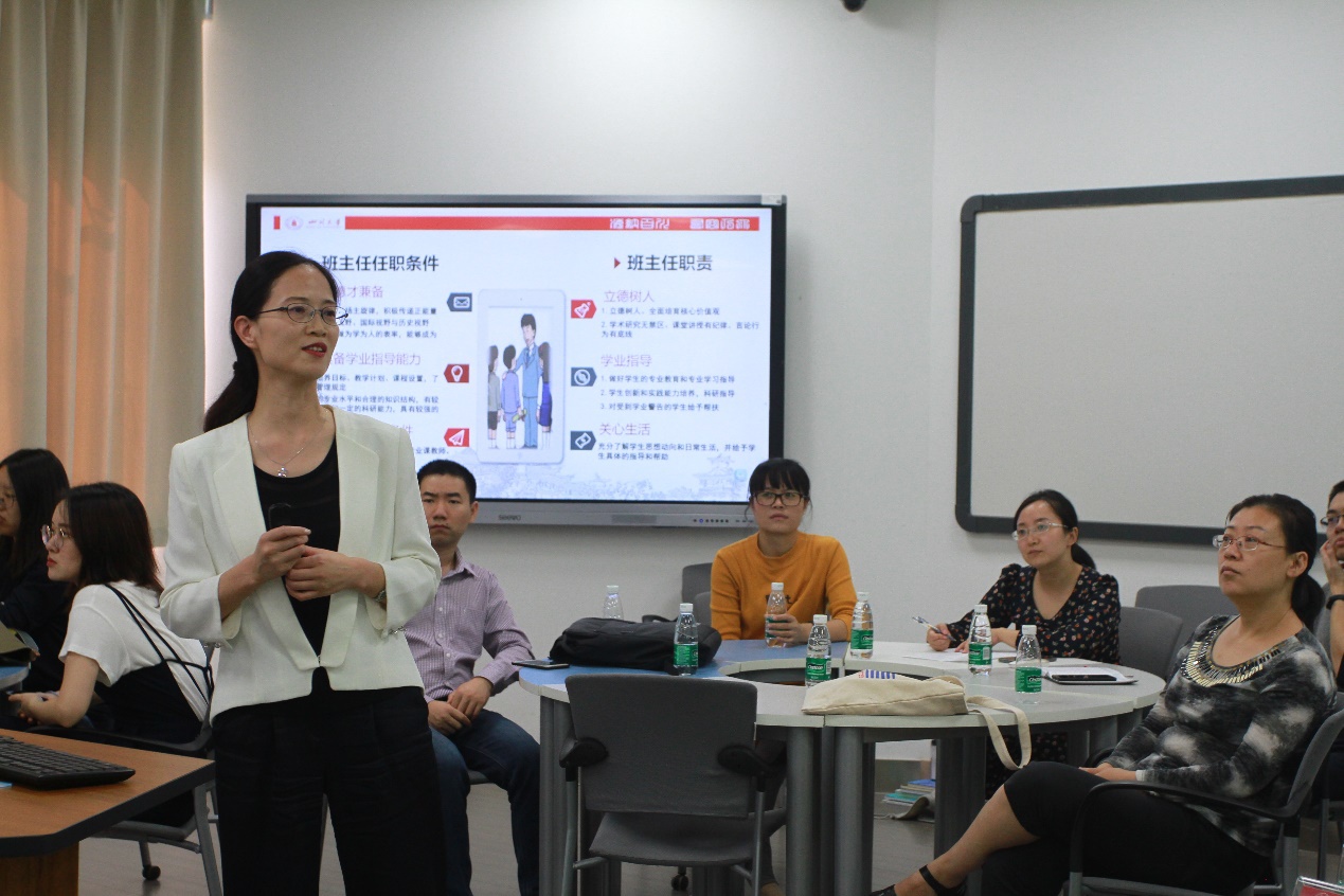 9月27日下午,由澳门太阳成集团教务处、教师教学发展中心、法学院、建筑与环境学院、澳门太阳成集团联合举办的澳门太阳成集团班主任胜任力培训暨班主任经验交流会,在澳门太阳成集团望江校区基础教学楼A304成功举行。本次会议共计40余位教师参加,太阳成官网周文泓老师作为班主任代表进行了工作经验分享。