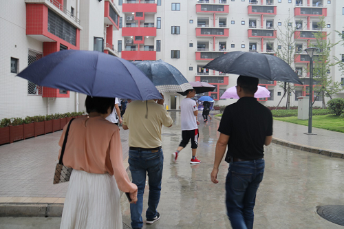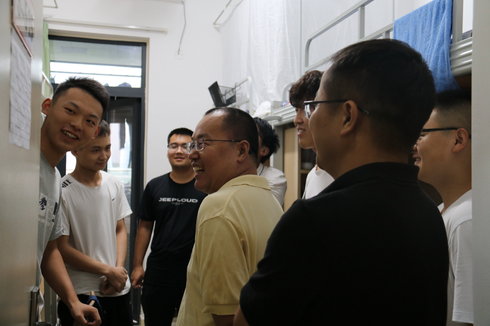 在此次走访慰问中,天突然下起大雨,但这丝毫未影响领导和老师们看望新同学的热情。他们亲切地同新生们交流,详细询问了同学们的籍贯、专业、年龄、适应情况,希望同学们能够适应气候和饮食的变化。随后,他们就寝室生活、宿舍管理、寝室安全等方面与同学们进行了深入沟通,并希望同学们能尽快适应大学生生活,适应新的学习生活节奏,做好宿舍文化建设,提前做好学习规划。同时,嘱咐新生们在生活中要有安全意识,注意防火防盗防诈骗;在集体生活中,要互帮互助,有困难一定和学院老师及辅导员反映,学院定会在学习与生活中给予同学们最大帮助。老师们亲切的话语,热情的问候,真切的关怀,无不使在场的2019级新生们感受到家一般的温暖,同学们纷纷表示对领导和老师们的到来感到惊喜与感动,对即将开始的大学生活有了新的期待,保证在大学中不辜负家长和老师的期望,好好学习、努力奋斗。最后,同学们还向学院领导、老师们表达了教师节的祝福。