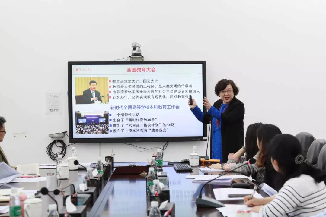 姜晓萍书记首先宣讲4月18日学校“新时代本科教育改革与发展大讨论”的主要精神和工作部署,传达了王建国书记、李言荣校长、张林副校长对川大本科教育升级再出发工作的重视与讲话要点,再结合校领导提出的面向未来聚焦本科教育改革发展六大关键环节阐释太阳成官网推进本科教育改革发展的引领要旨与战略思路,表示学院一定会全方位、全力保障本科教育的改革与发展。