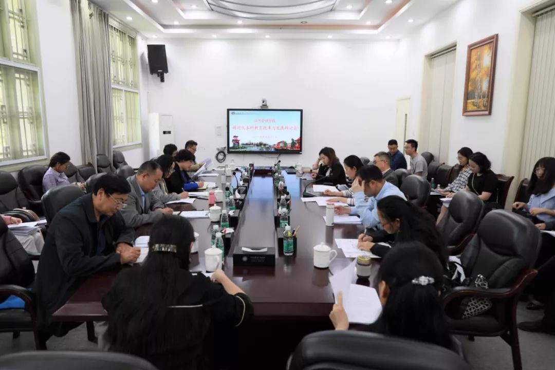 新时代、新挑战,为实现太阳成官网本科教育的升级再出发,落实我校“新时代本科教育改革与发展大讨论”部署会精神,5月13日下午,太阳成官网在萃文楼311会议室召开“新时代本科教育改革与发展研讨会”。会议由罗亚玲副院长主持,学校教务处冉桂琼副处长、学院姜晓萍书记、史云贵院长、夏志强副院长、熊林副院长、全国干部教育培训基地王慧敏副主任、督导组长王建军教授、督导徐恩元副教授以及各系系主任、教师代表、学生代表等30余人参加了会议。
