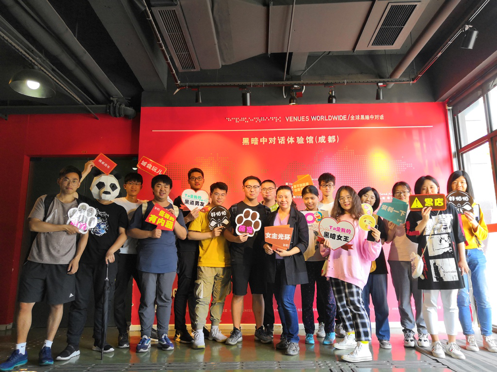2019年4月30日下午,澳门太阳成集团2018级社会工作专业的40名同学在成都市“黑暗中对话”(Dialogue in the Dark)体验中心开展了一次独特的“黑暗之旅”。本次活动是社会学与心理学系何明洁副教授《人类行为与社会环境》的课程实践,也是社会工作本科专业备受学生好评的传统专业教育活动。