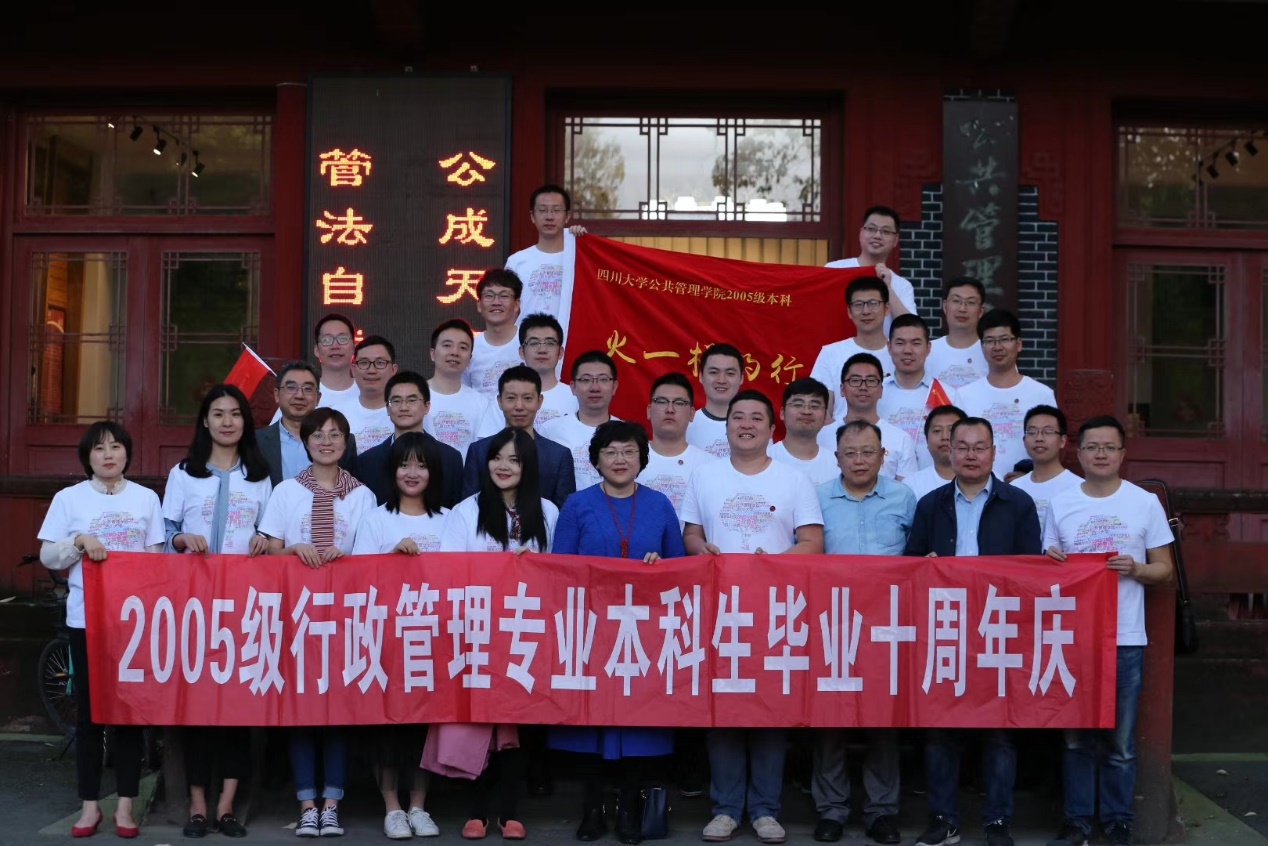 座谈会在阵阵掌声中圆满结束,与会师生在萃文楼外合影留念。十年弹指一挥间,05级行管人的青春依旧、精神依旧,在阵阵欢呼声中唱响着“火一样的青春,火一样的行管”的深情呐喊。