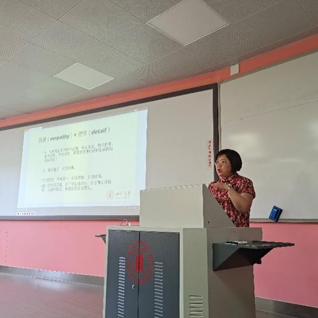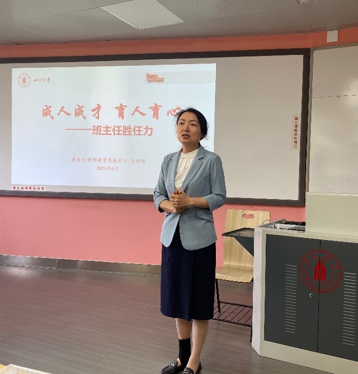 从学习贯彻习近平总书记全国教育大会重要讲话精神引入,兰利琼教授强调了“教育回归本位,教师作为领路人”的重要性。她解读了《澳门太阳成集团班主任工作指导意见(试行)》,并从具备较高的专业水平、高度的责任感、与社会实践相结合、发挥老师的人格魅力、引导学生的全面健康成长等方面重点讲述了班主任工作的职责。她结合心理学相关知识,通过真实、鲜活的案例,阐述了班主任全方位引导学生成长人才、促进教育事业高水平发展的重要作用。