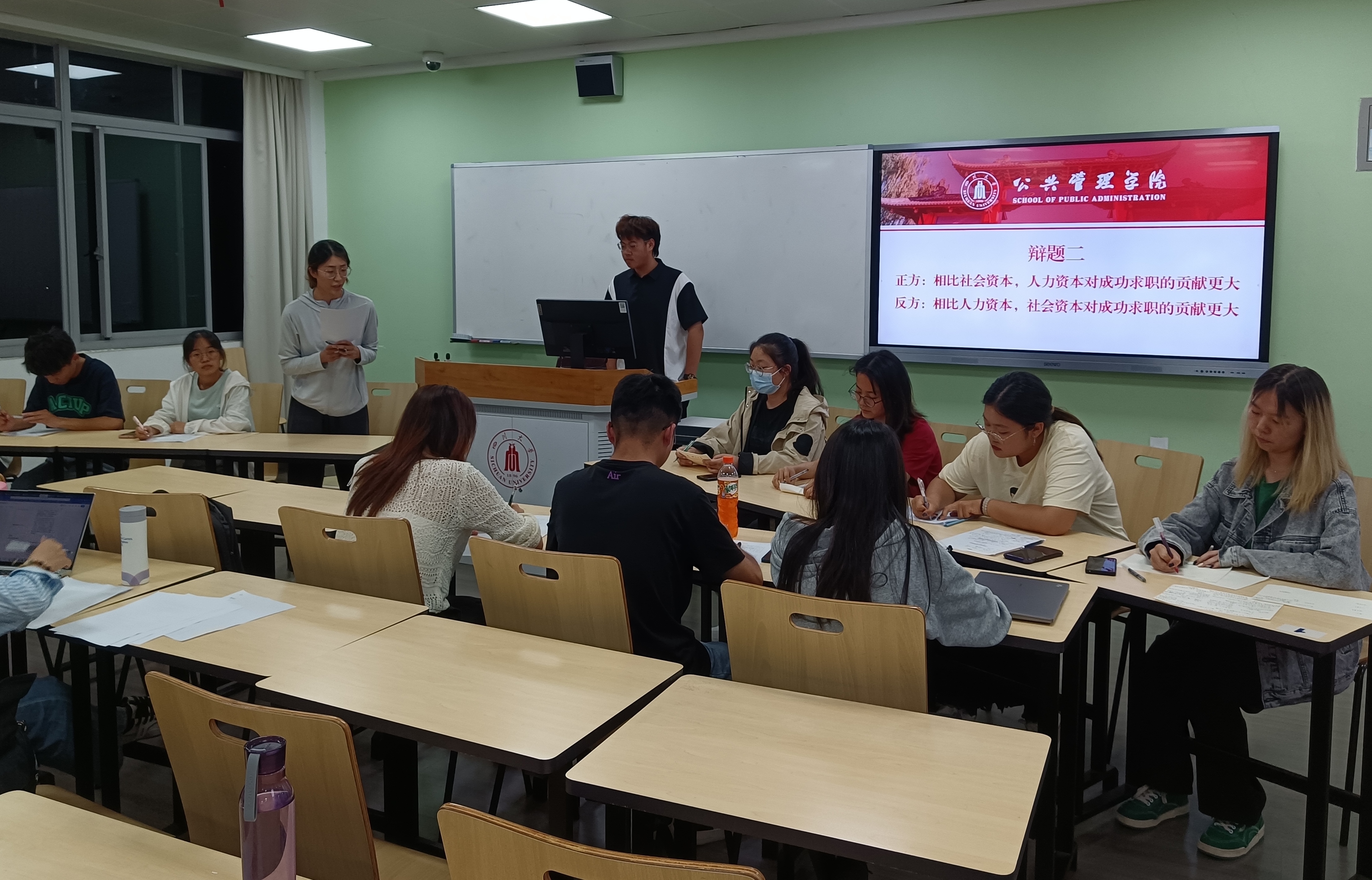 5月24日晚,在任课教师杨帆的精心组织下,《劳动经济学》课程辩论赛在江安校区第一教学楼C106教室成功举行。本次辩论赛共设三个辩题,每个辩题均关涉社会热点或劳动经济学的重要议题,分别是人工智能是否会导致大量失业、人力资本与社会资本对成功求职的贡献,以及劳动是否存在高低贵贱之分。三位来自澳门太阳成集团的硕士研究生简丽敏、杨丹、刘伟同学担任评委。