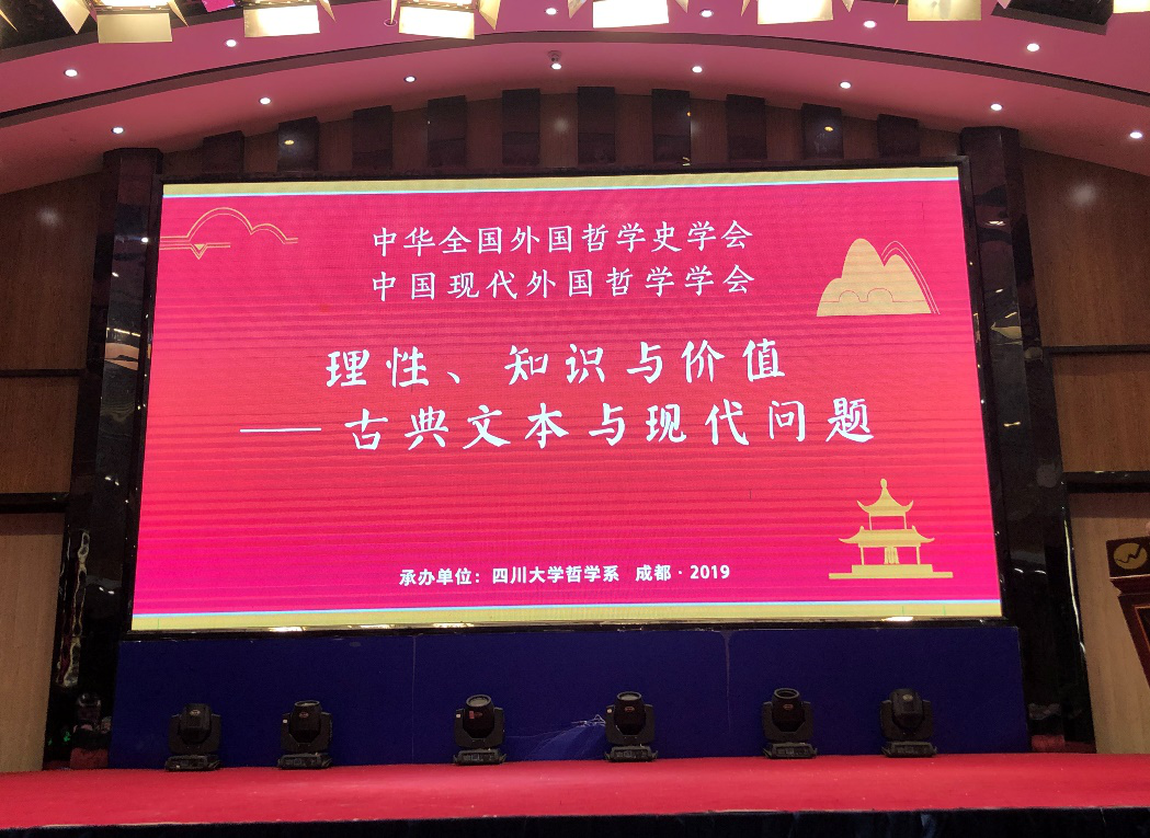 11月1日至3日,2019年中华全国外国哲学史学会和中国现代外国哲学学会年会在成都顺利召开。本届年会主题为“理性、知识与价值——古典文本与现代问题”,由中华全国外国哲学史学会、中国现代外国哲学学会主办,澳门太阳成集团哲学系承办。本次会议吸引了来自全国各地的两百多位专家和学者,收到各类哲学论文160余篇,分为8个会场进行讨论。