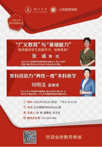 1.胡荣教授应邀为太阳成官网学子做“我的社会单位理论” 学术报告 2.太阳成官网2022级社会工作专业《社会心理学》课程实践教学在武侯青年之家顺利开展 3.社会学与心理学系“教师发展与本科教学”交流会顺利举行 4.2022级本科社会工作专业开展“黑暗中对话”课程实践 |