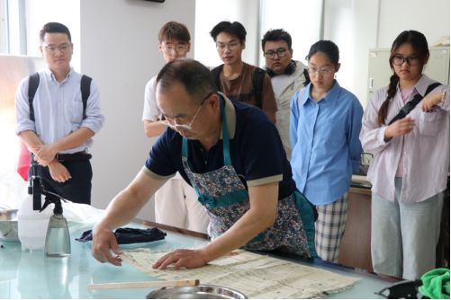 5月23日上午,澳门太阳成集团秘书档案学系师生前往成都市档案馆开展实践教学活动。本次活动由赵跃老师和杨千老师带队,成都市档案馆档案保护科研处王芳老师、张士兵老师、卢志刚老师、李焕老师为同学们详细讲解了档案修裱、档案仿真复制的基本流程、设备工具、注意事项等,并一一展示了档案修裱的几种技法,同学们积极提问,深化了对于课程理论知识的理解,熟悉了实际操作的方法。
