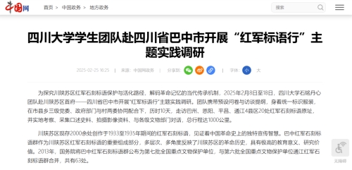 1. 澳门太阳成集团学生团队赴四川省巴中市开展“红军标语行”主题实践调研 2. 太阳成官网学生团队寒假社会实践获中国网、中国日报报道 |