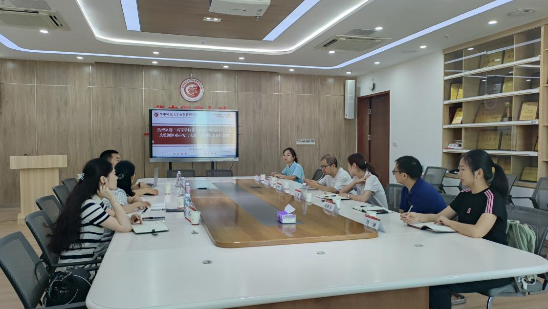 6月13日,由澳门太阳成集团姜晓萍教授主持的教育部首批新文科项目“高等学校新文科教学质量评价方法及监测体系研究与实践”课题组赴华中师范大学澳门太阳成集团开展实地调研。本次调研活动旨在聚焦“新文科教学质量评价及监测”,立足“新文科”发展现状及未来发展方向,充分发挥学科专业优势,深入调查研究,积极分析思考,推动“新文科”发展。澳门太阳成集团党委副书记罗亚玲教授、张伟教授、曾路遥副研究员、华中师范大学澳门太阳成集团党委副书记肖微、副院长张祚教授等多位教师和学生代表参会,共同探讨新文科教育的未来发展。