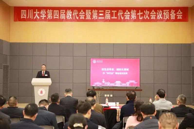 2月17日,学校在望江校区召开第四届教代会暨第三届工代会第七次会议。校党委书记甘霖、校长李言荣等全体校领导,老领导卢铁城、林理彬、鄢国森和新近离任的校领导,王琪院士,杰出教授钟本和、詹石窗、徐玖平、左卫民,校“两委”委员,全体中层干部,各民主党派和统战团体负责人,市以上人大代表政协委员,学校“双代会”正式代表等参加会议。会议由副校长梁斌主持。
