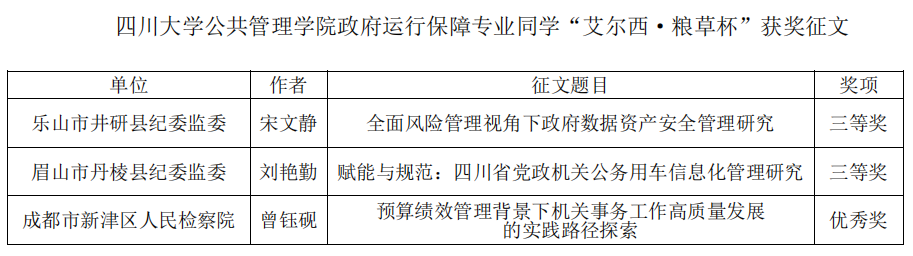 在人才培养方面,来自澳门太阳成集团政府运行保障专业的同学表现亮眼。2022级政府运行保障专业的宋文静、刘艳勤同学荣获三等奖,2023级政府运行保障专业的曾钰砚同学荣获优秀奖。同学们取得的优异成绩,不仅肯定了我中心在人才培养方面的长期努力和成效,也展示出了澳门太阳成集团在培育具有实践根基的公共管理优秀人才方面的教育成果。