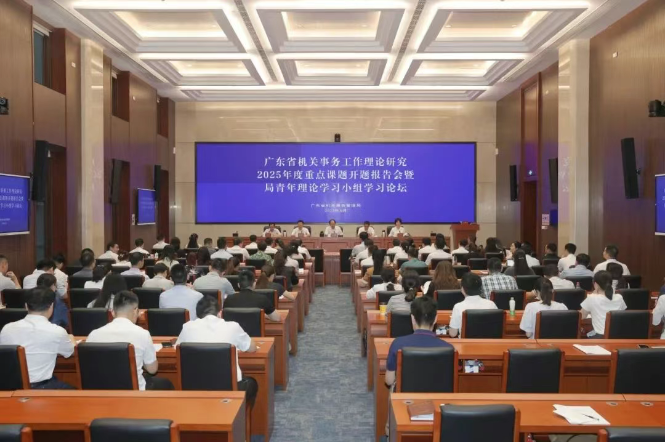 罗展怀指出,今年以来,广东机关事务系统认真落实全国第六届机关事务理论研究暨政府运行保障管理学科建设研讨会精神,坚持以我为主,紧密结合实际,联动高校研究机构,深入扎实开展理论研究工作,取得积极进展,打开了全新局面。他强调,开展好机关事务理论研究工作,一要进一步紧贴业务实践。立足近年来广东机关事务创新发展的丰富实践土壤,聚焦资产、服务、经费三大管理职能,着力挖掘机关事务领域的基础性、关键性、战略性问题,以高质量的理论研究提炼改革经验,破解实践难题,引领高质量发展。二要进一步完善工作机制。在共同开展重点课题理论研究中不断深化与广东机关事务研究院的务实合作,更好发挥双方优势,推动理论与实践的深入融合。加强对全省机关事务系统理论研究的统筹协调,引导研究资源向重点关键领域聚焦,形成研究合力。三要进一步发挥青年骨干主力军作用。青年干部要珍惜青春年华,把握宝贵机遇和难得平台,立足本职岗位,积极投身理论研究和业务实践,将个人成长融入机关事务工作高质量的历史进程。他要求,课题研究过程中,要认真组织集体研究,扎实开展实地调研、深入开展课题研究,领导干部要以身作则、以上率下,带动大家大学习、深调研、真研究。要认真践行过紧日子要求,坚持勤俭办一切事业,注重细节、精打细算,切实把有限的科研经费用在课题研究的“刀刃”上。